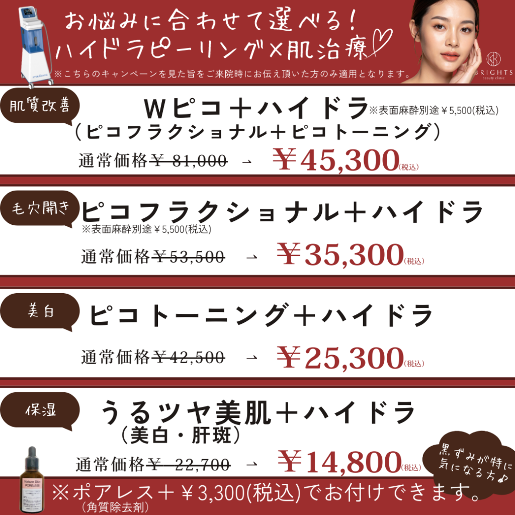※ハイドラに+¥3,300でポアレス(角質除去剤)追加していちご鼻特化にアップグレード可能◎